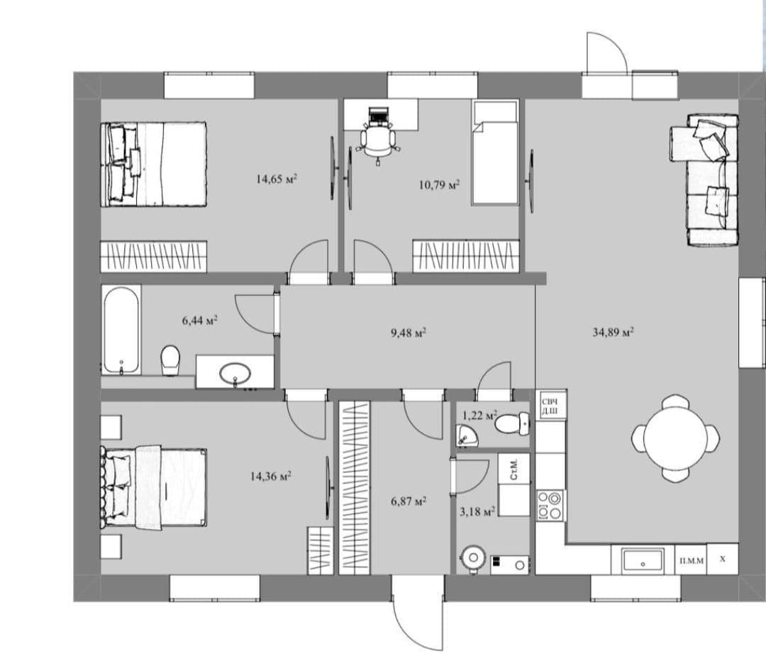 Количество спален:3