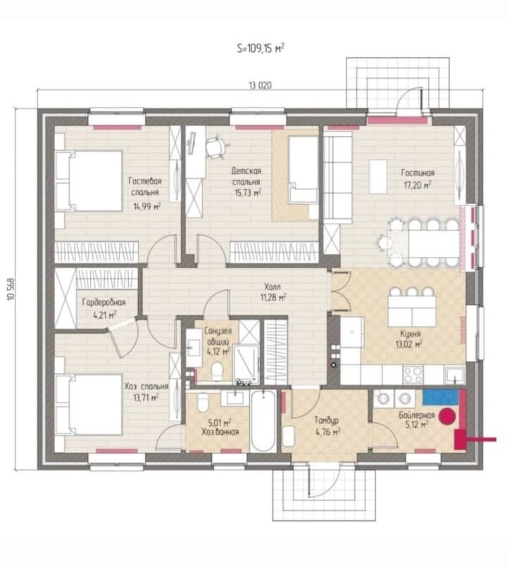 Количество спален:3