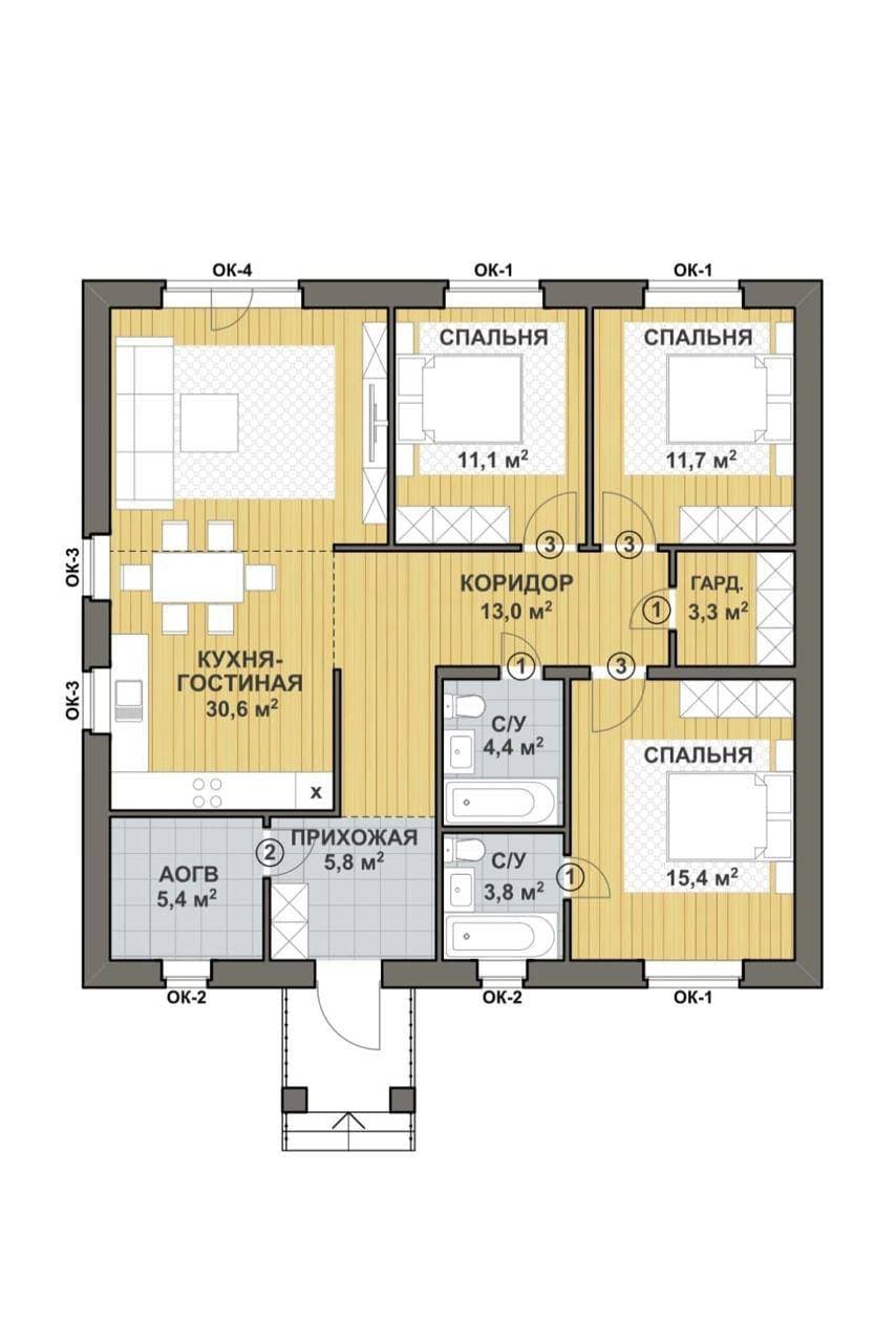 Количество спален:3